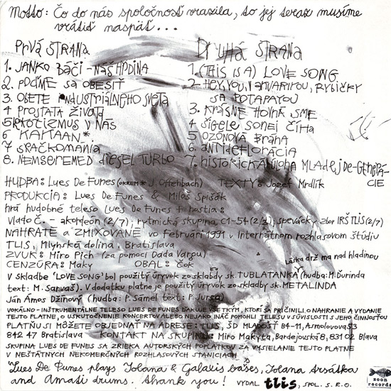 Cenzúra: Maky. Obal: Čok. Vydané v roku 1991 na LP.