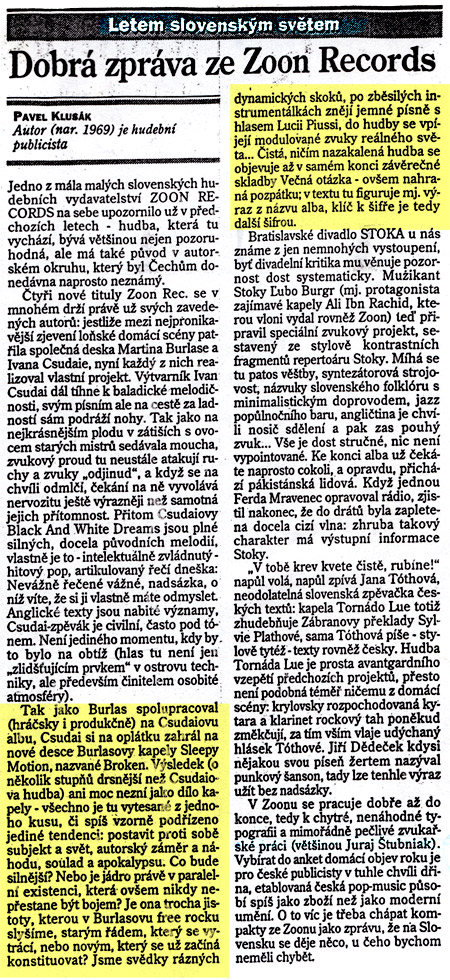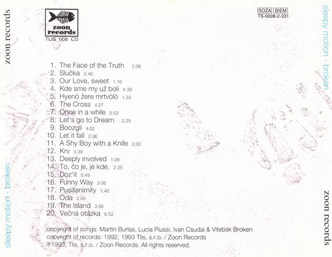 Tracks 9 and 11 played by Vitebsk Broken (Peter Machajdík, Peter Zagar, Daniel Baláž, Mikuláš Škuta,Martin Burlas and Olga Smetanová). Recorded and mixed by Juraj Štubniak in 1992, 1993.